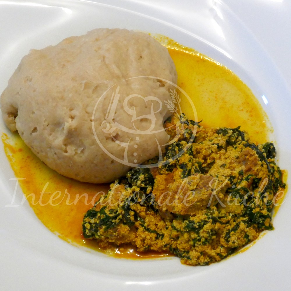 Die Egusi Soup wird gerne mit Fufu gegessen. Wie man diesen macht, erfährt ihr in einem anderen Blogpost.