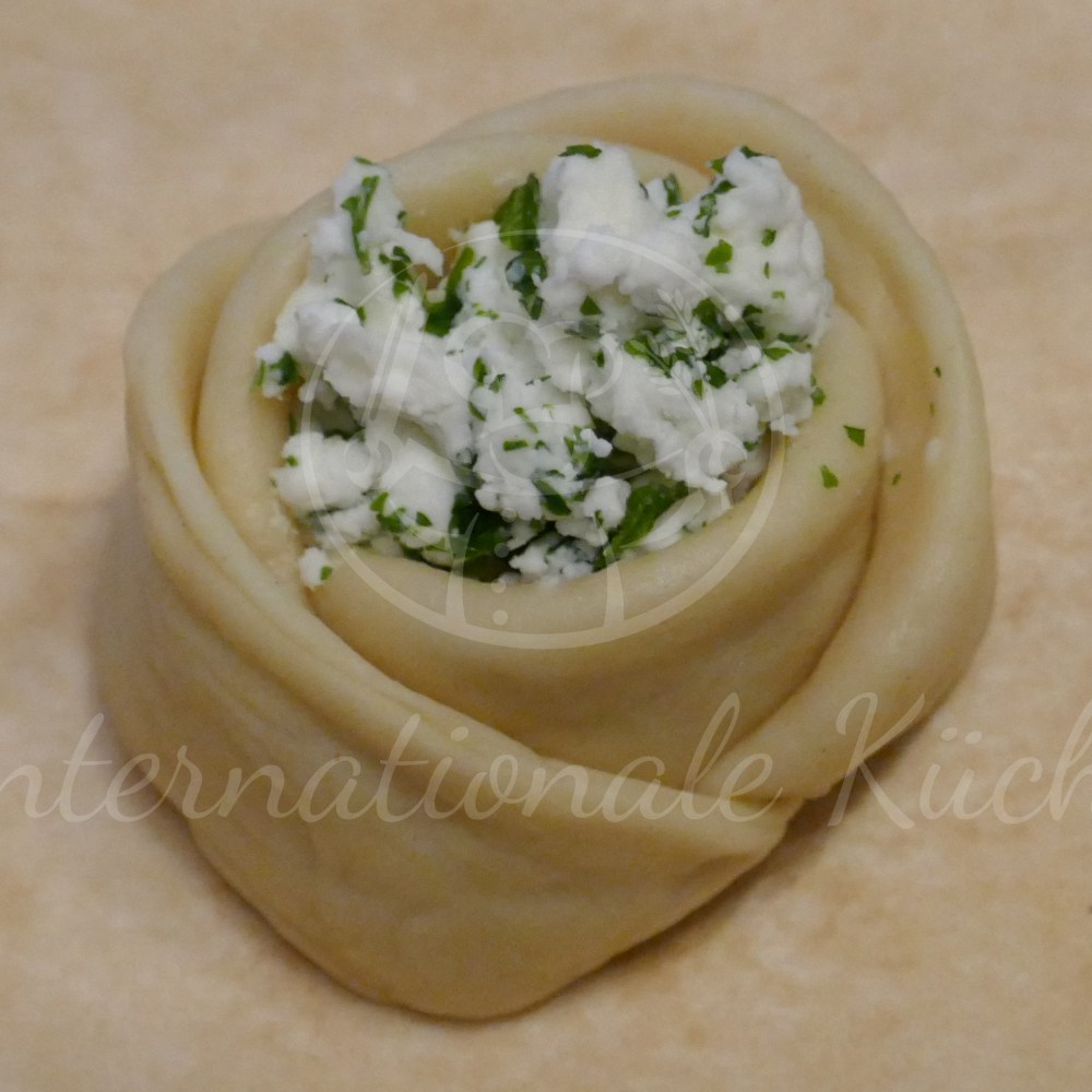 Gebäck gibt es in der Türkei besonders viel, auch in unterschiedlichen Formen. Eine besonders schöne und beliebte Form ist diese Rosenform. Der Teig für diese Poğaça ist sehr weich und bleibt mehrere Tage frisch. Sie können unterschiedlich gefüllt werden, mit Hackfleisch, Kartoffeln oder auch Schafskäse. Ich zeige euch heute Letzteres.