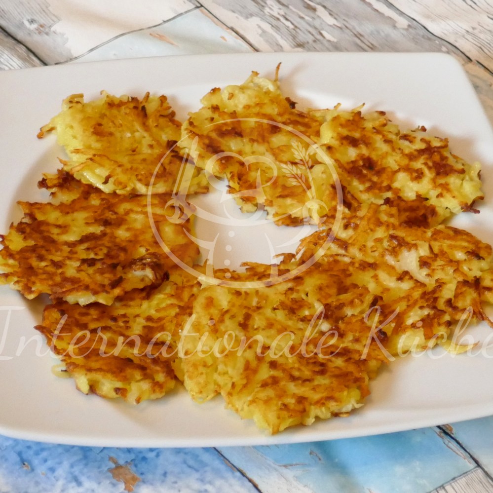 Zum Zeitpunkt dieses Blogeintrags ist gerade Chanukka. Ein Gericht, das die Juden zu diesem mehrtägigen Fest gerne essen sind Latkes (Jiddisch) oder Levivot (Hebräisch). Diese Kartoffelpuffer sind schnell und einfach zuzubereiten und schmecken wirklich himmlisch. Üblicherweise werden sie mit Apfelmus gegessen, sie schmecken aber auch pur oder mit anderen Toppings sehr lecker.