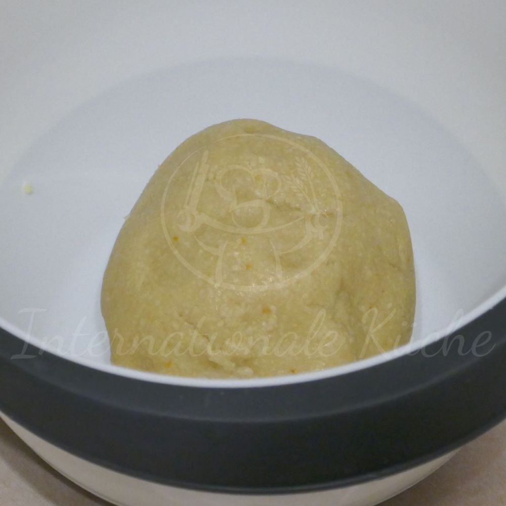 Alle Zutaten werden per Hand miteinander vermischt. Bitte nicht mehr Flüssigkeit zugeben als angegeben – vielleicht werdet ihr überrascht sein, aber diese Menge Wasser reicht auf jeden Fall, um einen schönen Teig zu formen.