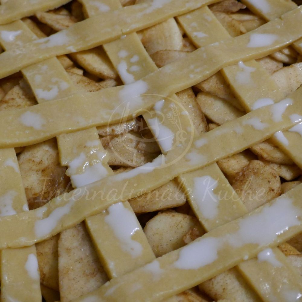 Zum Schluss wird das Gitter noch mit Ei oder Milch bepinselt und schon kommt der Kuchen bei 180 Grad Ober-/Unterhitze etwa 40 bis 50 Minuten in den vorgeheizten Backofen. Noch leicht warm schmeckt die Appeltaart am besten, aber auch kalt kann man dazu nicht nein sagen.