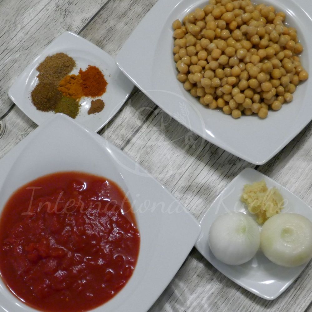 Gesunde Kichererbsen, Tomaten und viele leckere Gewürze: das ist das indische Gericht Chana Masala. Hier kommen auch schon die Zutaten, die ihr dafür braucht:
